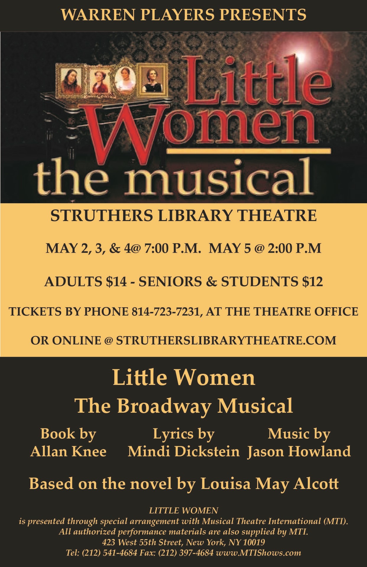 Little Women embodies the complete theatrical experience, guaranteeing a night filled with laughter, tears and a lifting of the spirit. Little Women features plenty of great opportunities for female actors and singers ranging in age from teenage to 60 years old. The show also has a flexible cast size that can include as few as ten or as many as 42 people! The powerful score soars with the sounds of personal discovery, heartache and hope – the sounds of a young America finding its voice.