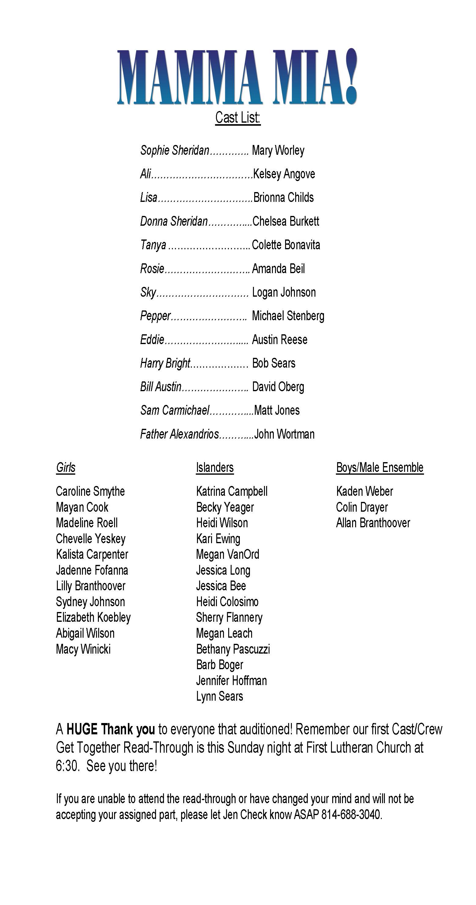 ABBA's hits tell the hilarious story of a young woman's search for her birth father. This sunny and funny tale unfolds on a Greek island paradise. On the eve of her wedding, a daughter's quest to discover the identity of her father brings three men from her mother's past back to the island they last visited 20 years ago.