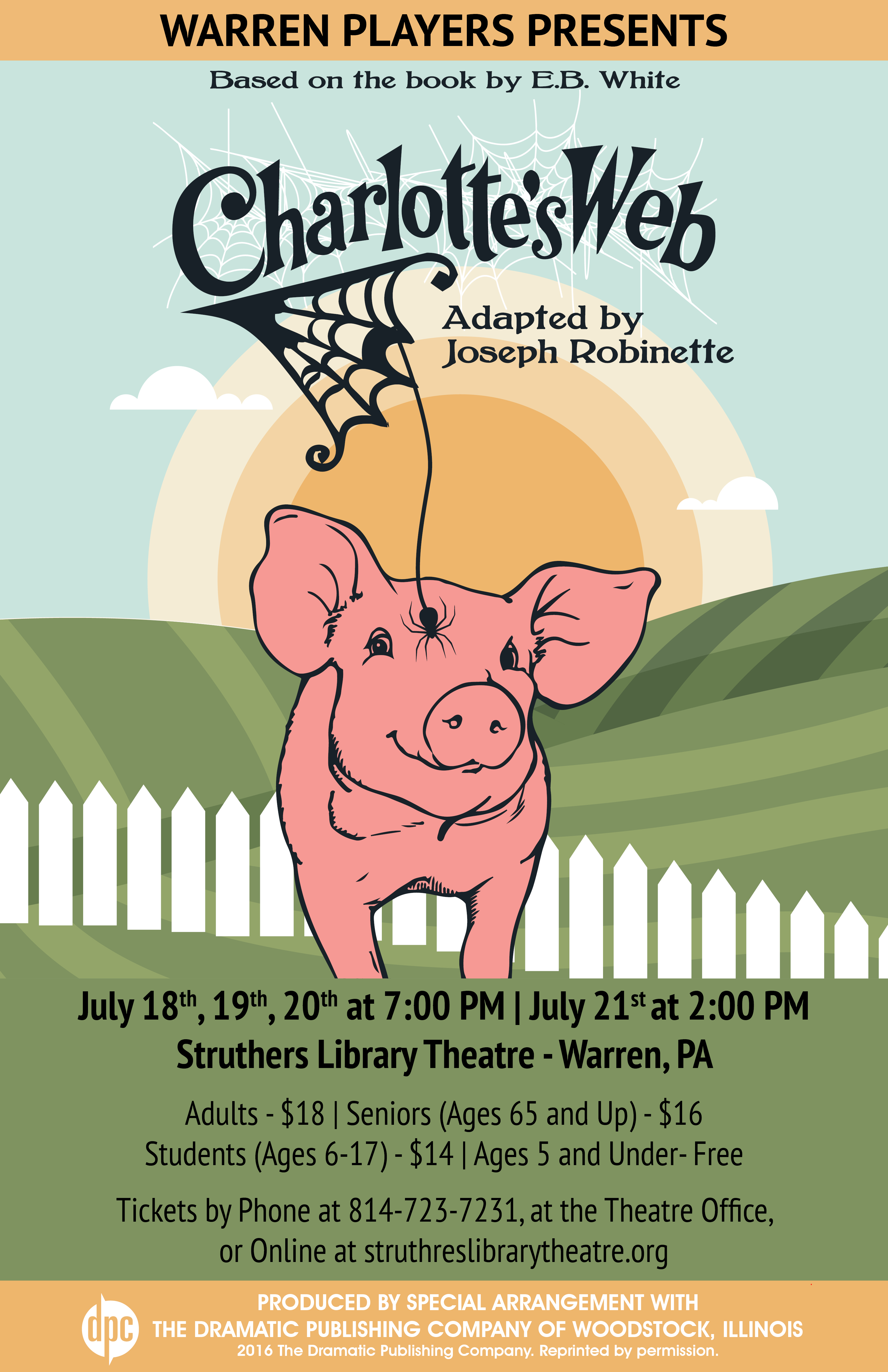 The Children's Literature Association named this "the best American children's book of the past two hundred years," and Joseph Robinette, working with the advice of E.B. White, has created a play that captures this work in a thrilling and utterly practical theatrical presentation. The costumes and unit set may be simple or as colorful and elaborate as you wish; it's the story and relationships that make the show. All the enchanting characters are here: Wilbur, the irresistible young pig who desperately wants to avoid the butcher; Fern, a girl who understands what animals say to each other; Templeton, the gluttonous rat who can occasionally be talked into a good deed; the Zuckerman family; the Arables; and, most of all, the extraordinary spider, Charlotte, who proves to be “a true friend and a good writer.” Determined to save Wilbur, Charlotte begins her campaign with the "miracle" of her web in which she writes, "Some pig." It's the beginning of a victorious campaign which ultimately ends with the now-safe Wilbur doing what is most important to Charlotte. This is a beautiful, knowing play about friendship that will give your actors a great opportunity and your audience an evening of enchantment.